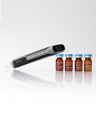 I perform your treatment using the mesoestetic® Axion device — a clinical-grade system that combines precision microneedling with advanced serum infusion and LED light therapy.
